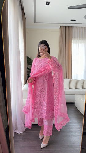 3pc PINK Embroidered Shalwar Kameez with NET dupatta Stitched Suit Ready to wear HW-JFPINK