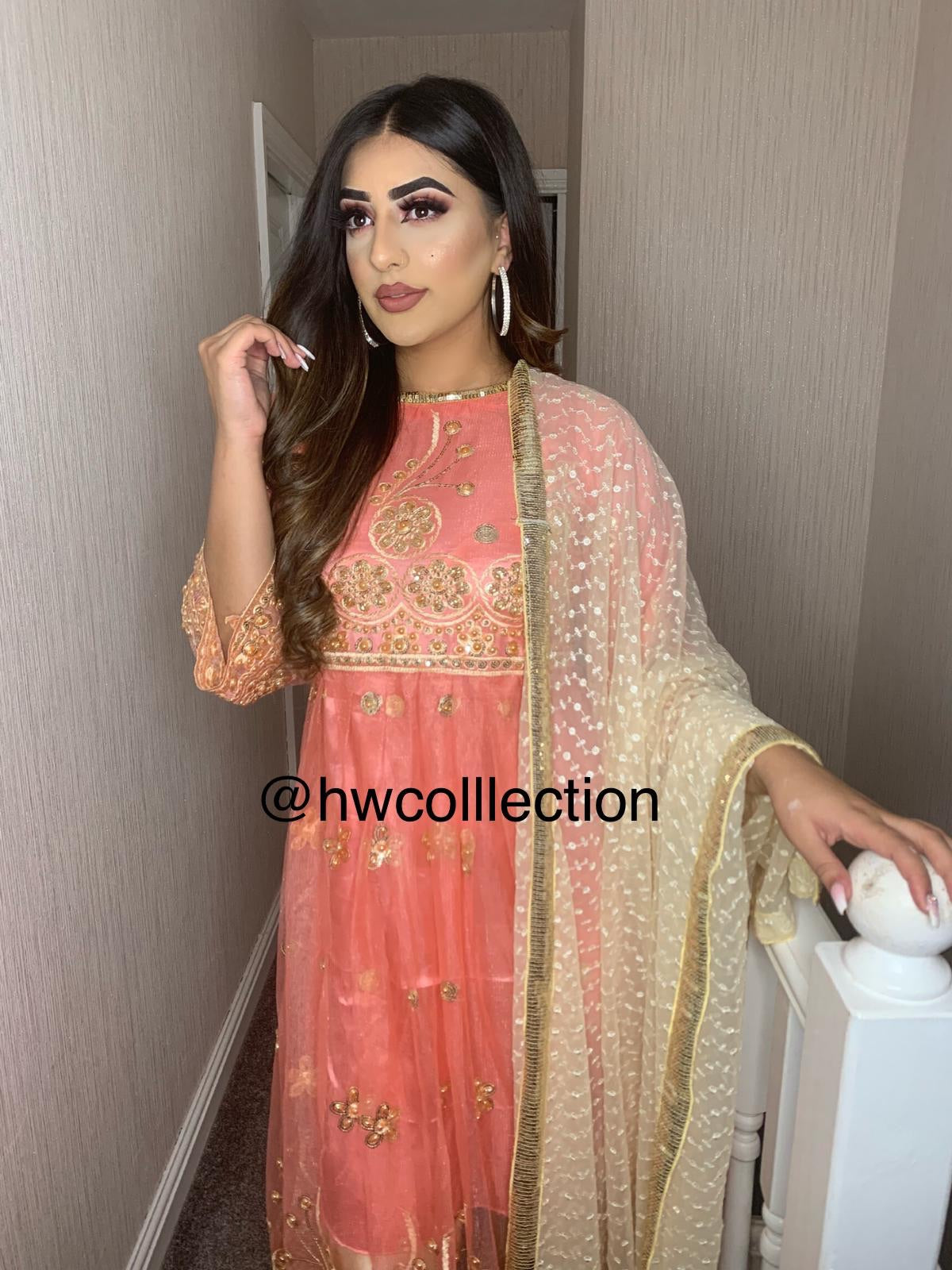 3pc Embroidered Pink frock with gold trouser and dupatta Net Shalwar Kameez Stitched Suit Ready to wear