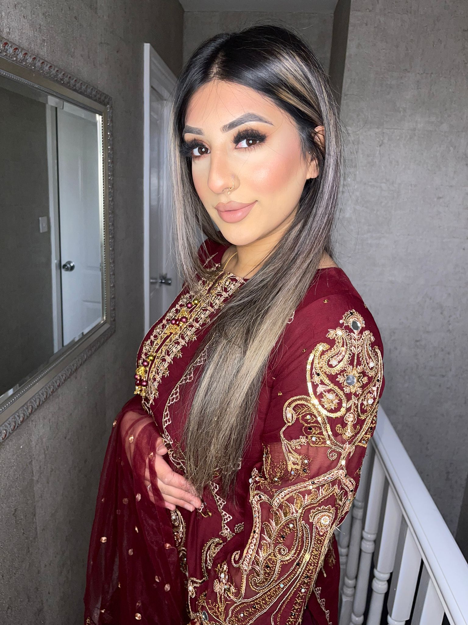 3pc MAROON Embroidered Shalwar Kameez with Net dupatta Stitched Suit Ready to wear HW-MAROON