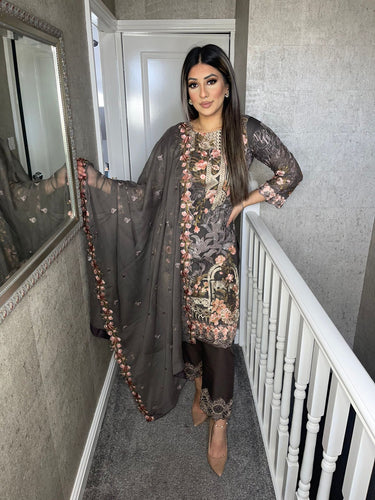 3pc DARK GREY Embroidered suit with chiffon dupatta Embroidered Stitched Suit Ready to wear HW-DARKGREY