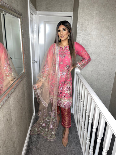 3pc Pink Embroidered Shalwar Kameez with Net dupatta Stitched Suit Ready to wear HW-UQPINK