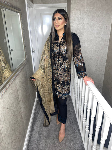 3pc BLACK Embroidered Shalwar Kameez with NET dupatta Stitched Suit Ready to wear HW-RMBLACK