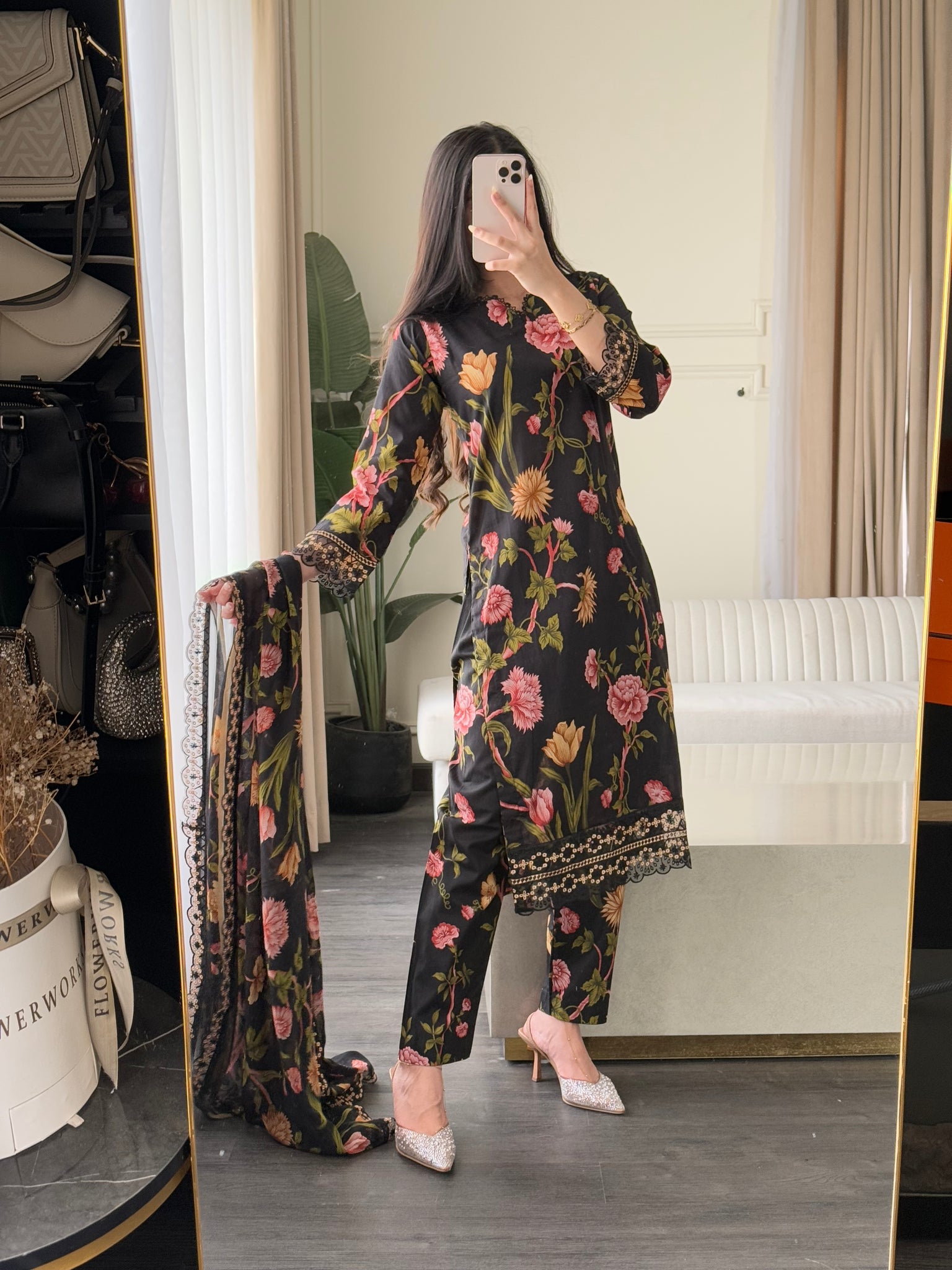 3 pcs Stitched lawn suit Ready to Wear with LAWN dupatta LAWN-JF113
