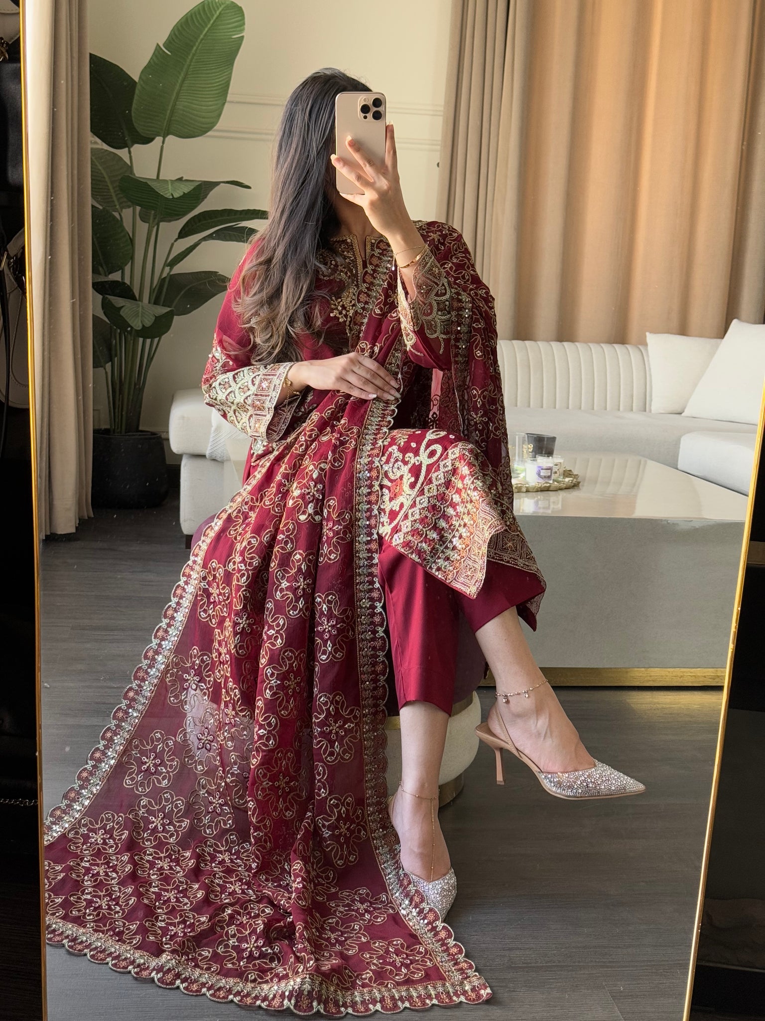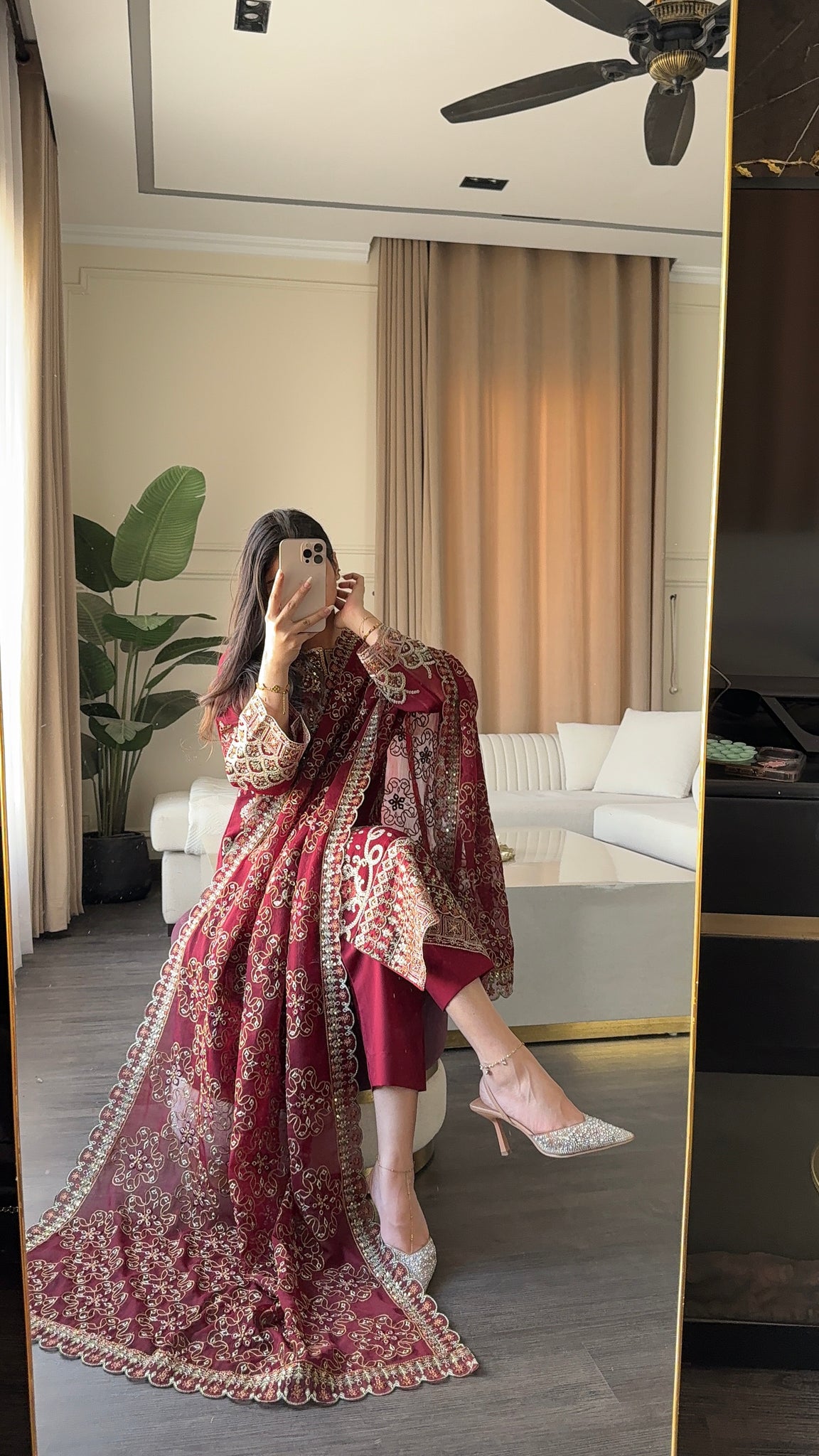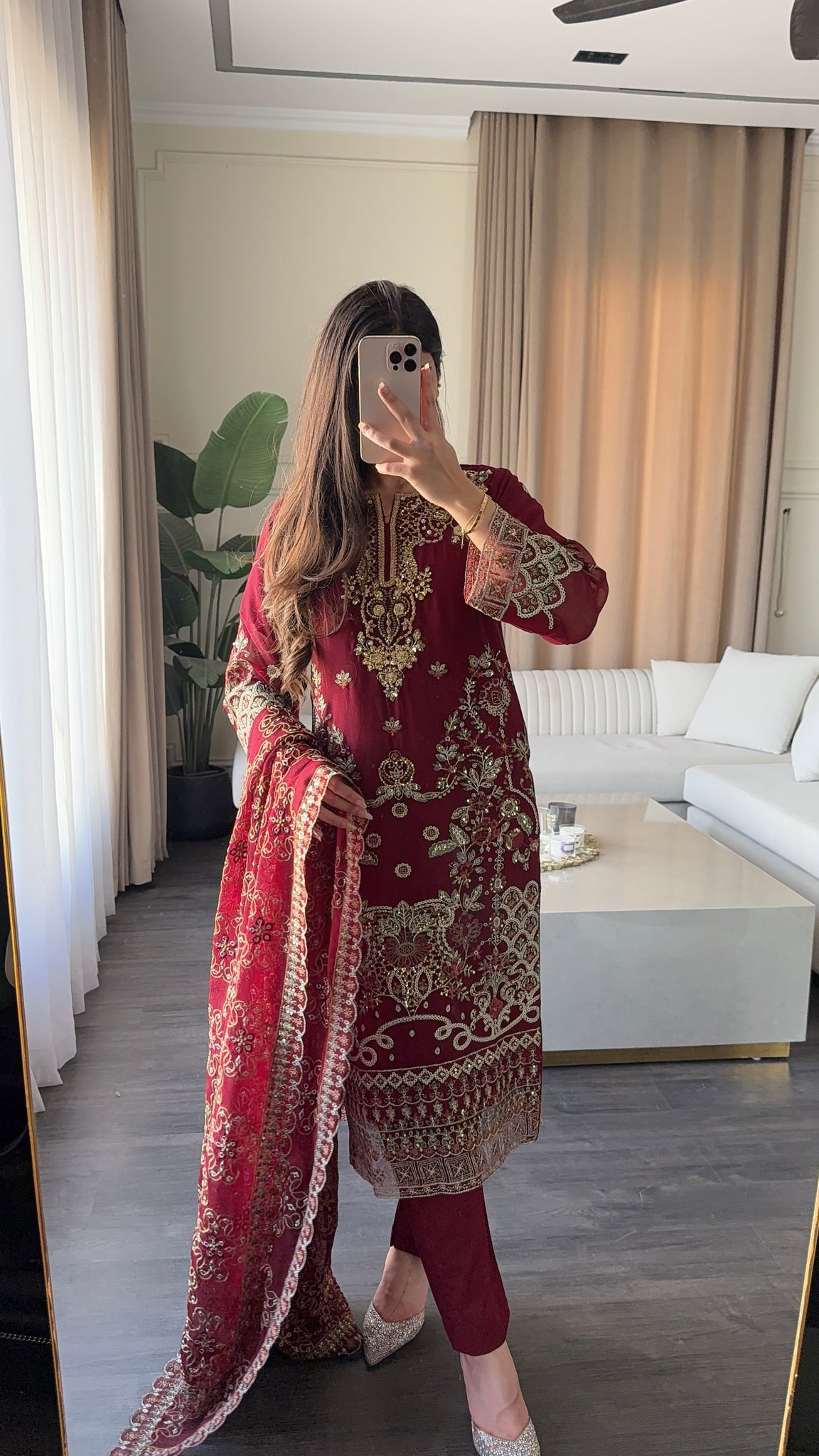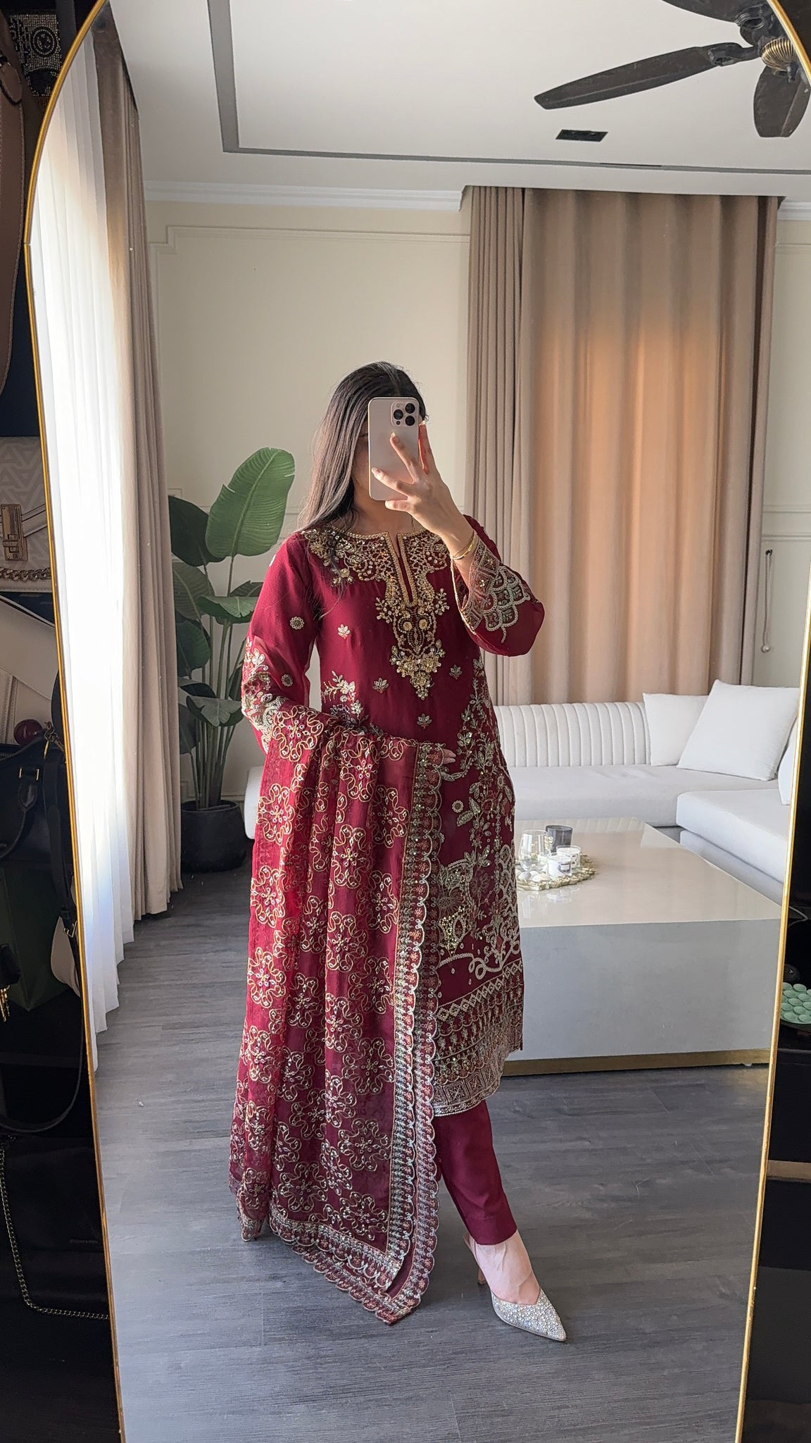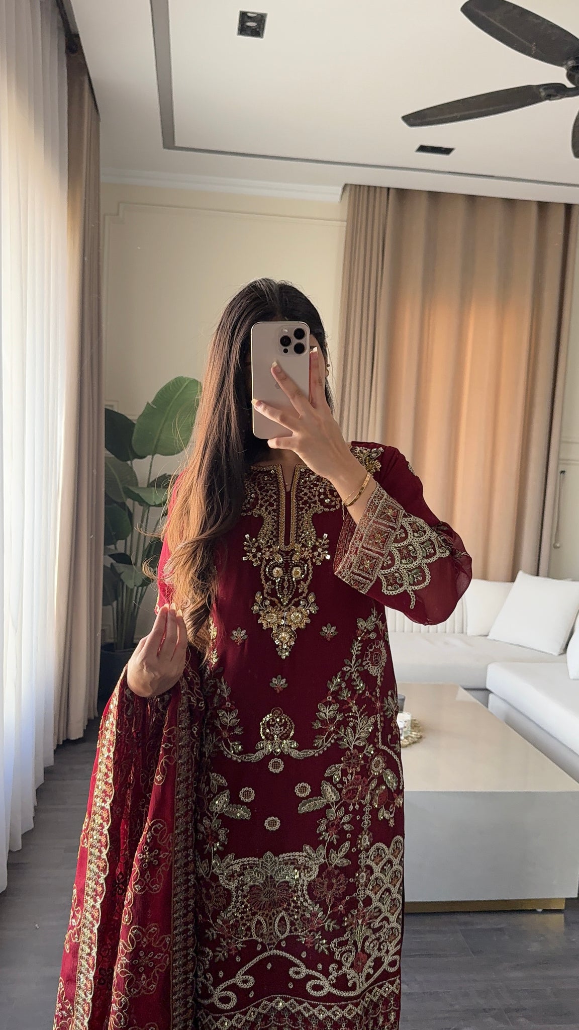 Fabric:Top: Chiffon EmbroideredInner&bottom: MalaiDuaptta: Net