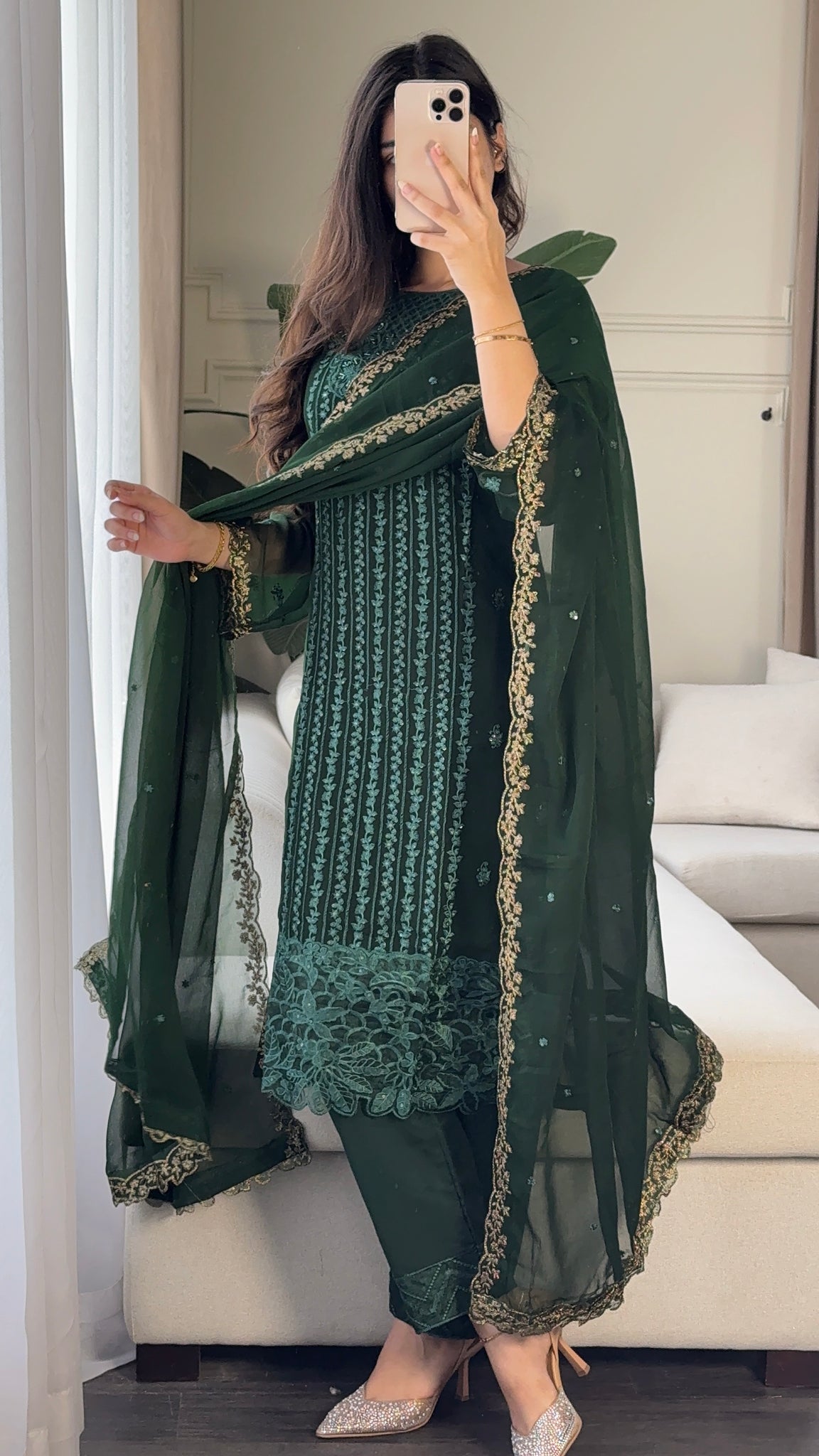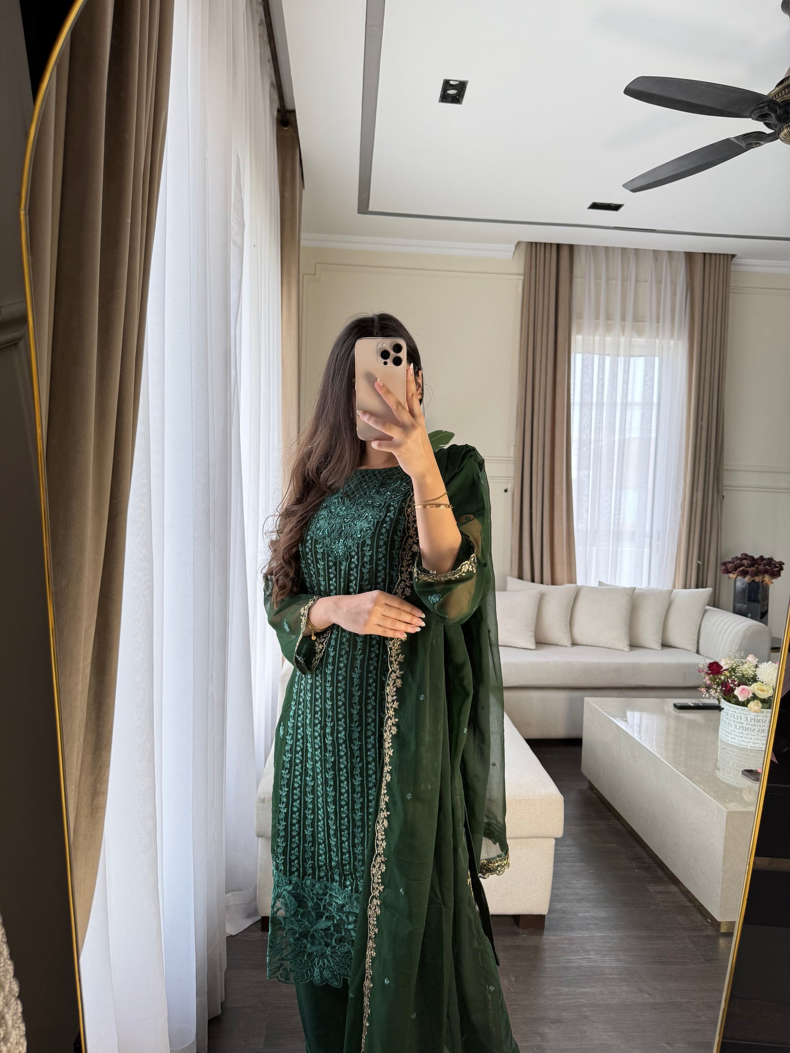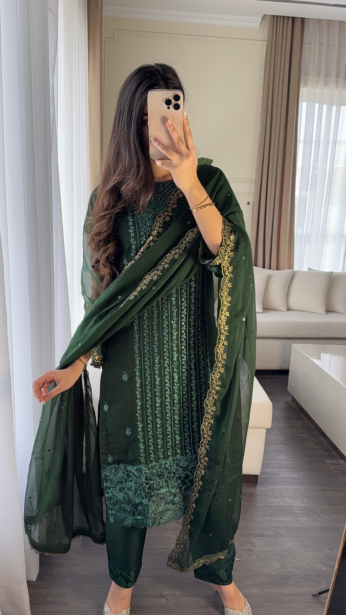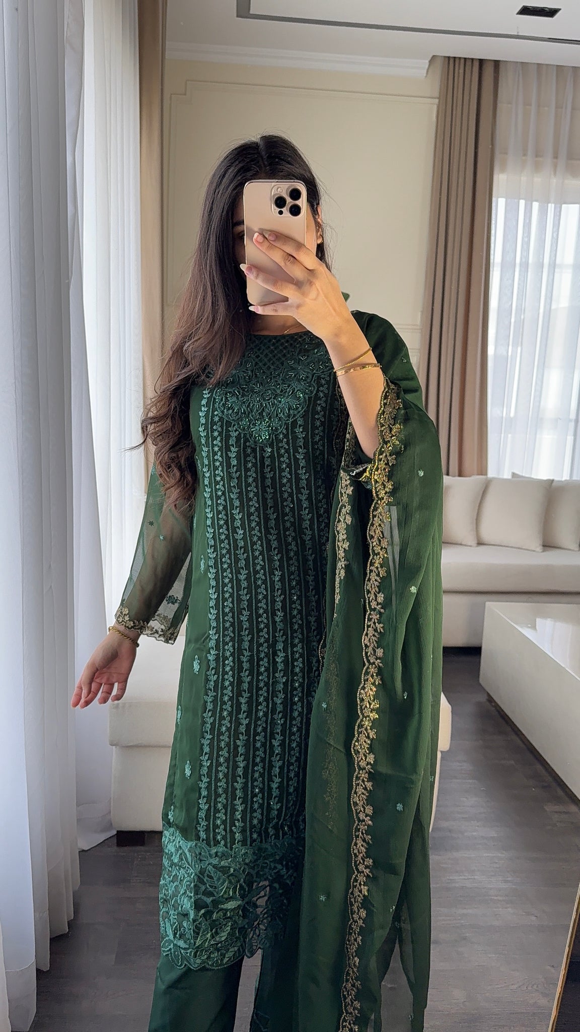 3pc Emerald Green Embroidered Shalwar Kameez with CHIFFON dupatta Stitched Suit Ready to wear HW-U2419