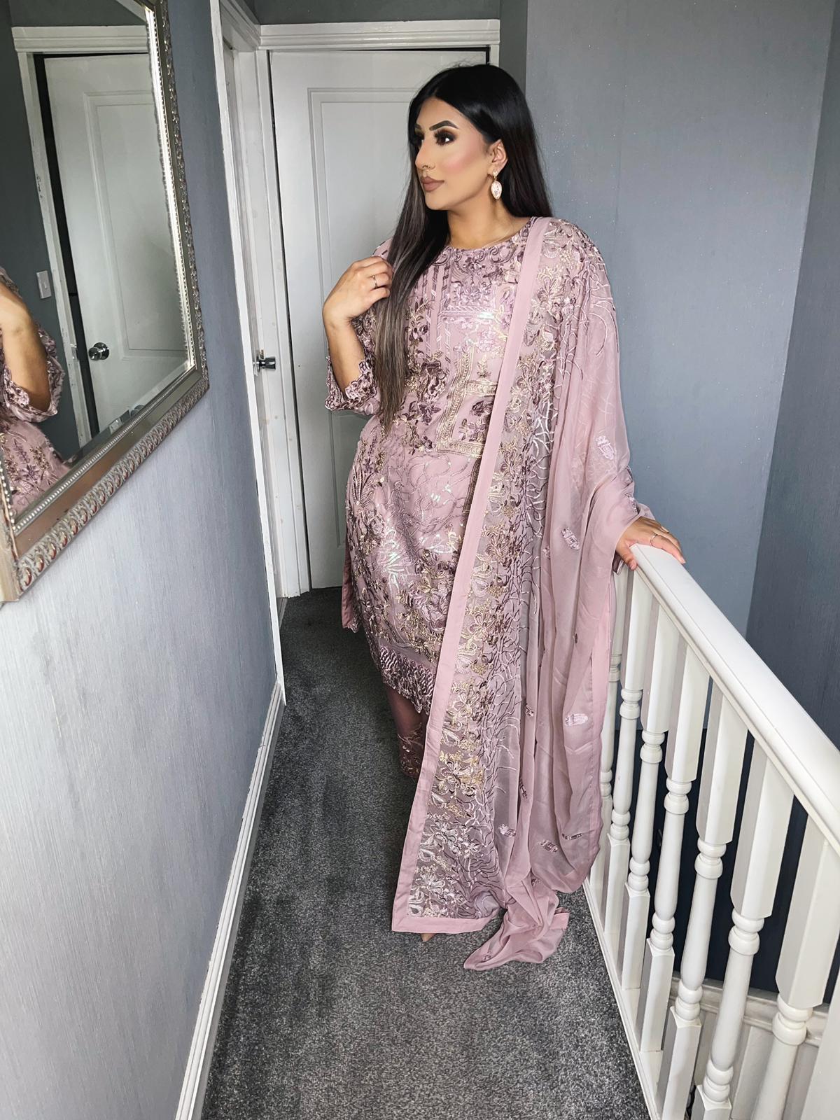 3pc PURPLE Embroidered Shalwar Kameez with CHIFFON dupatta Stitched Suit Ready to wear HW-JFPURPLE01