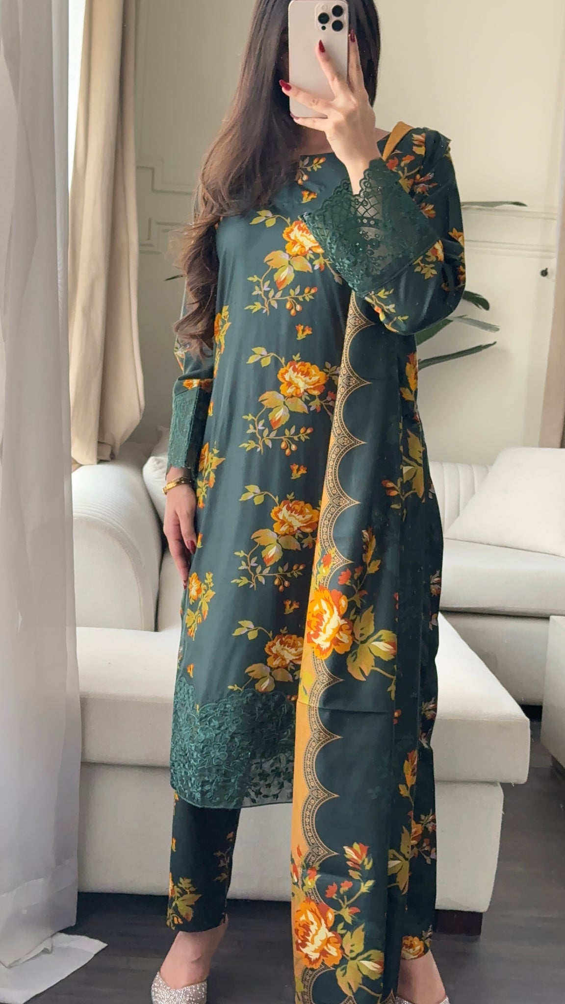 3PC Stitched BOTTLE GREEN LINEN shalwar Suit Ready to wear LINEN winter Wear with LINEN dupatta HW-DH36