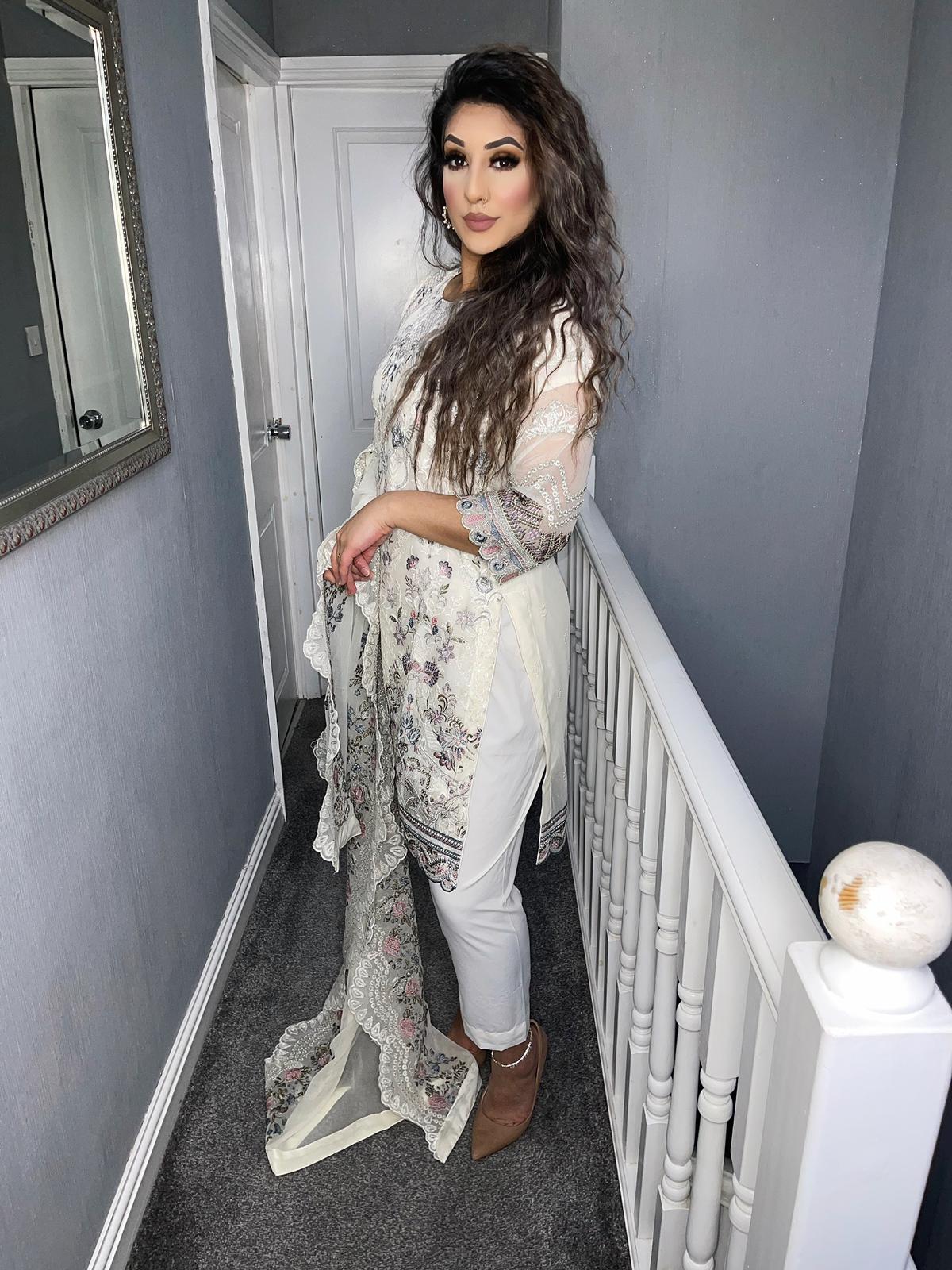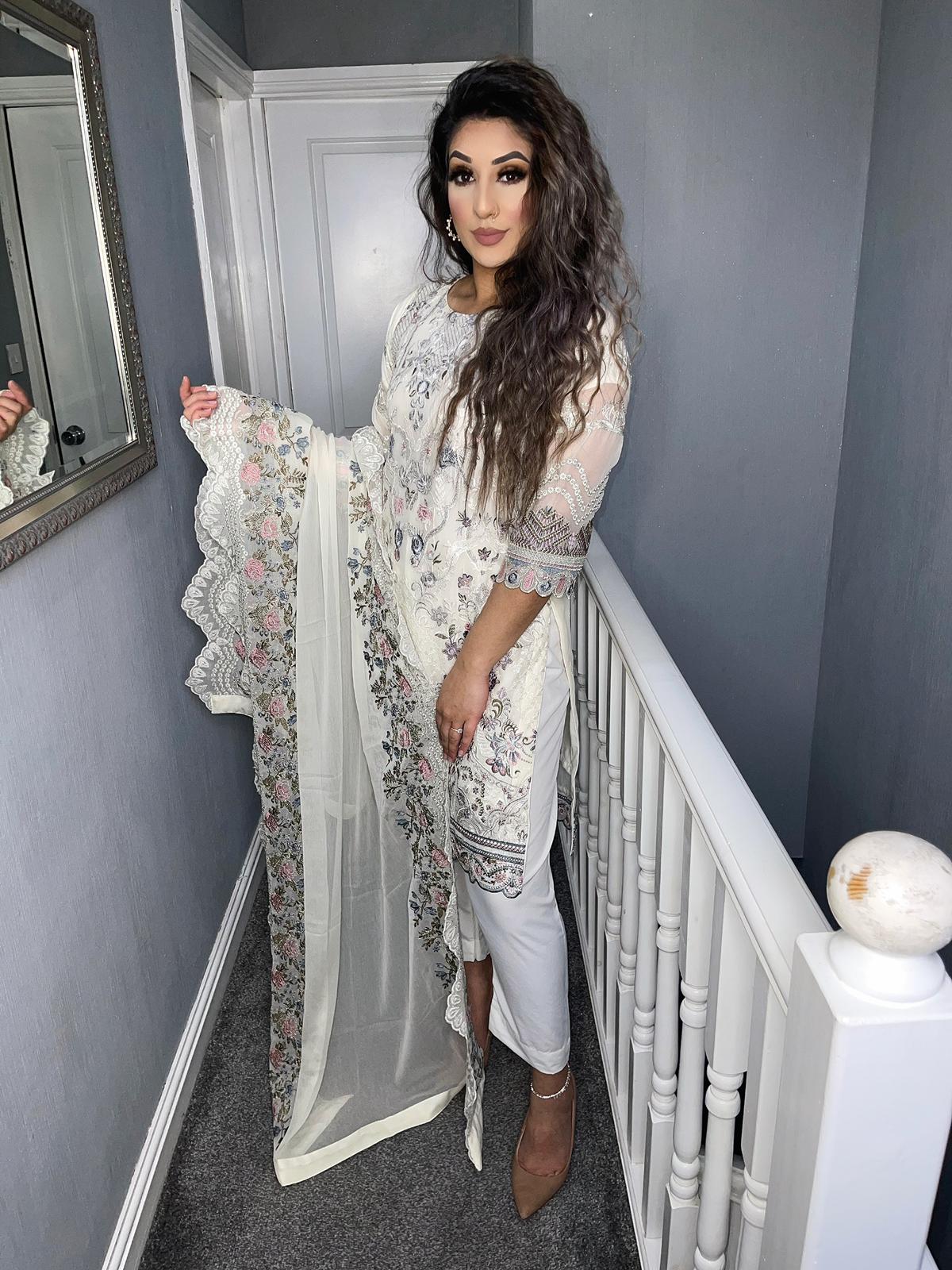 3pc WHITE Embroidered suit with Chiffon dupatta Stitched Suit Ready to wear HW-JFWHITE01
