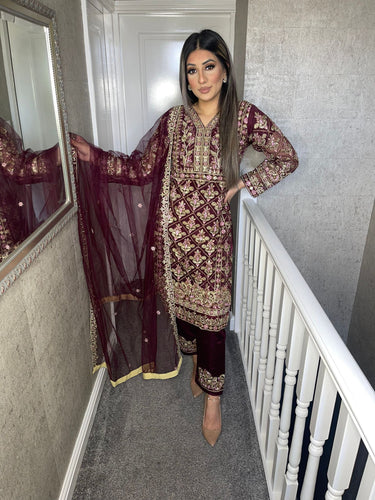 3pc Maroon Embroidered Shalwar Kameez Stitched Suit Ready to wear KH-MAROONORG