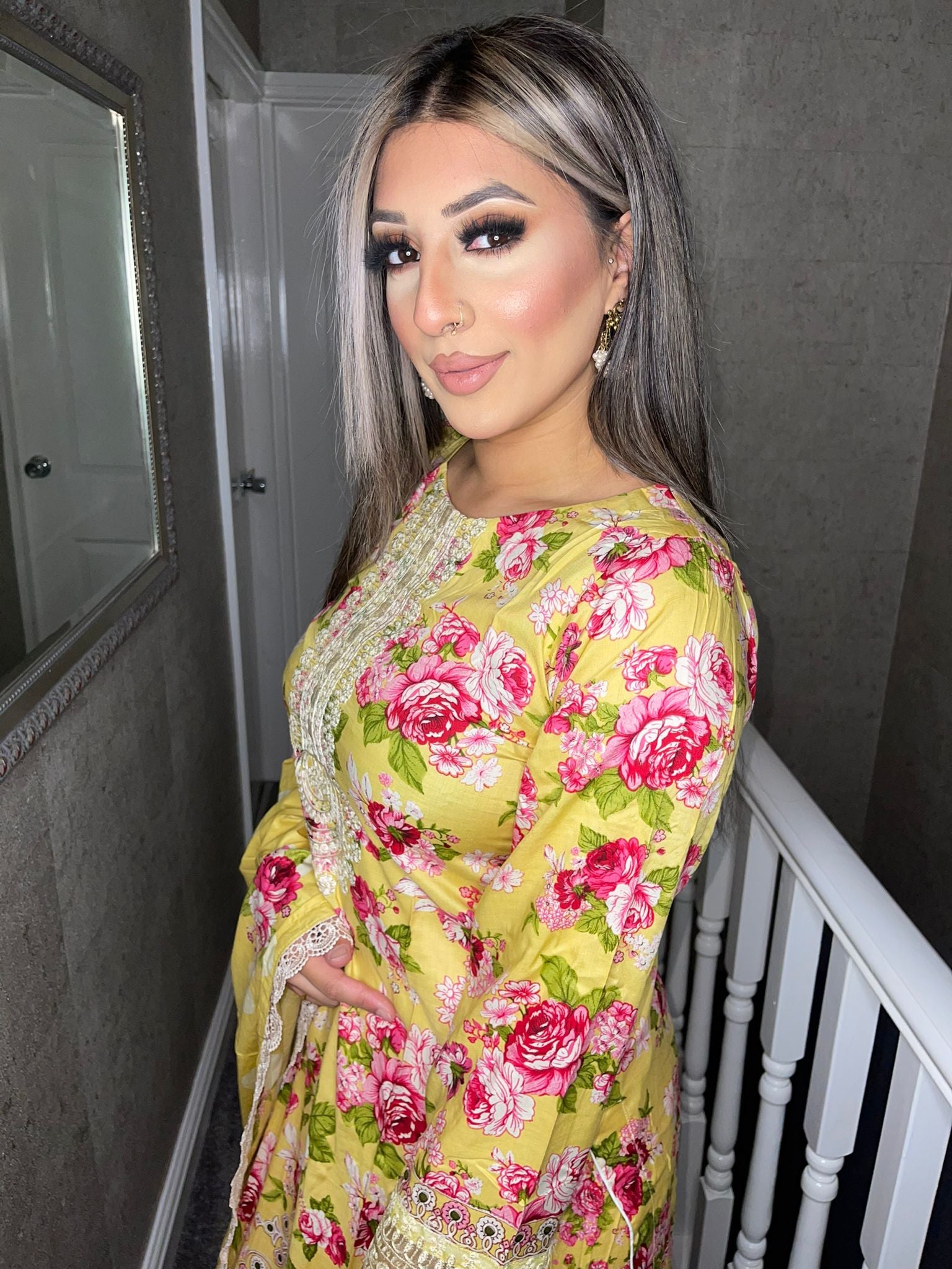 3 pcs YELLOW Lilen shalwar Suit Ready to Wear with chiffon dupatta winter MB-169B