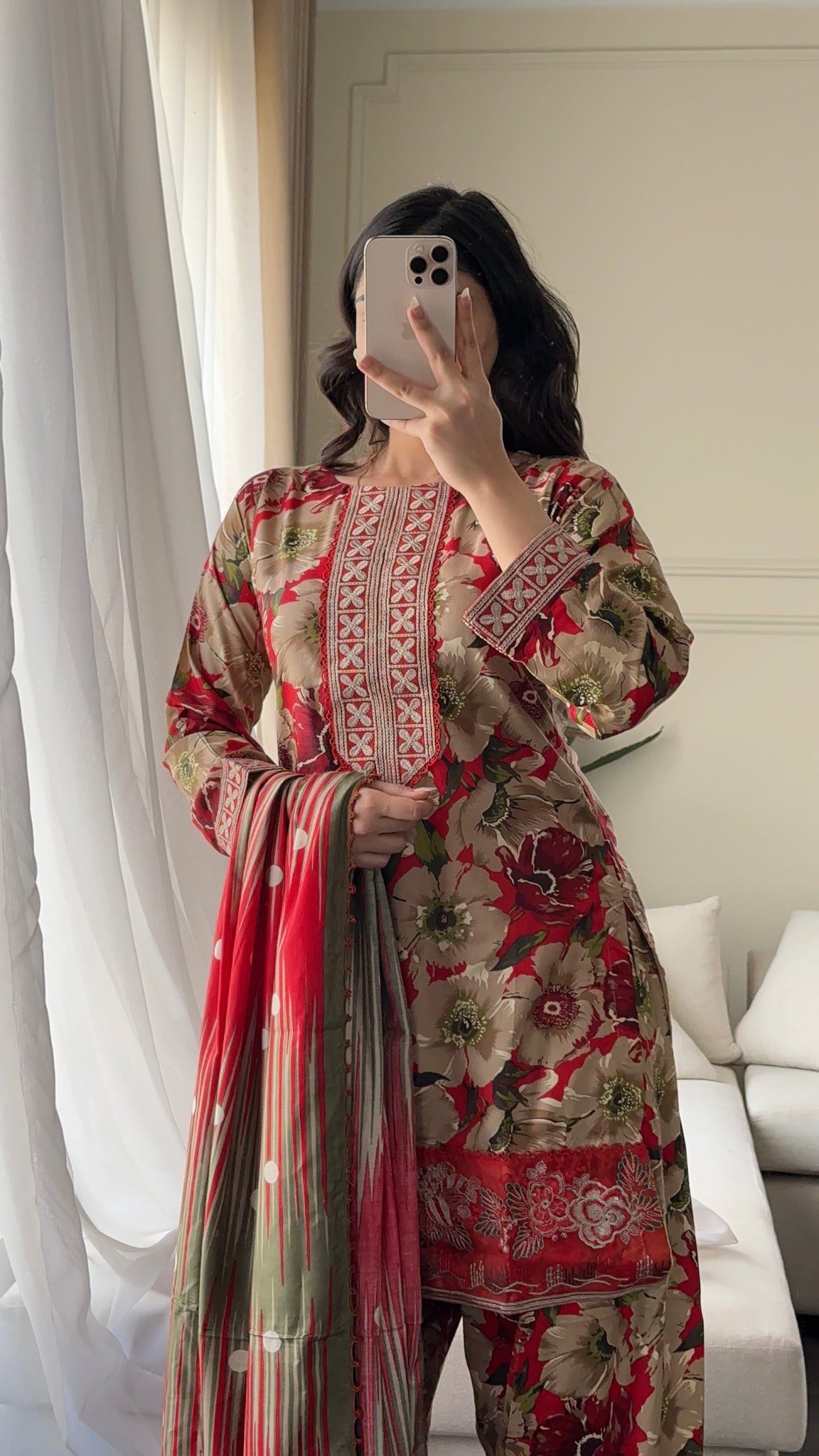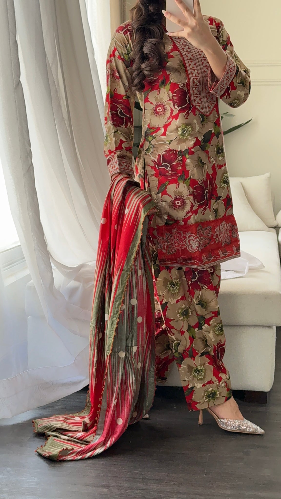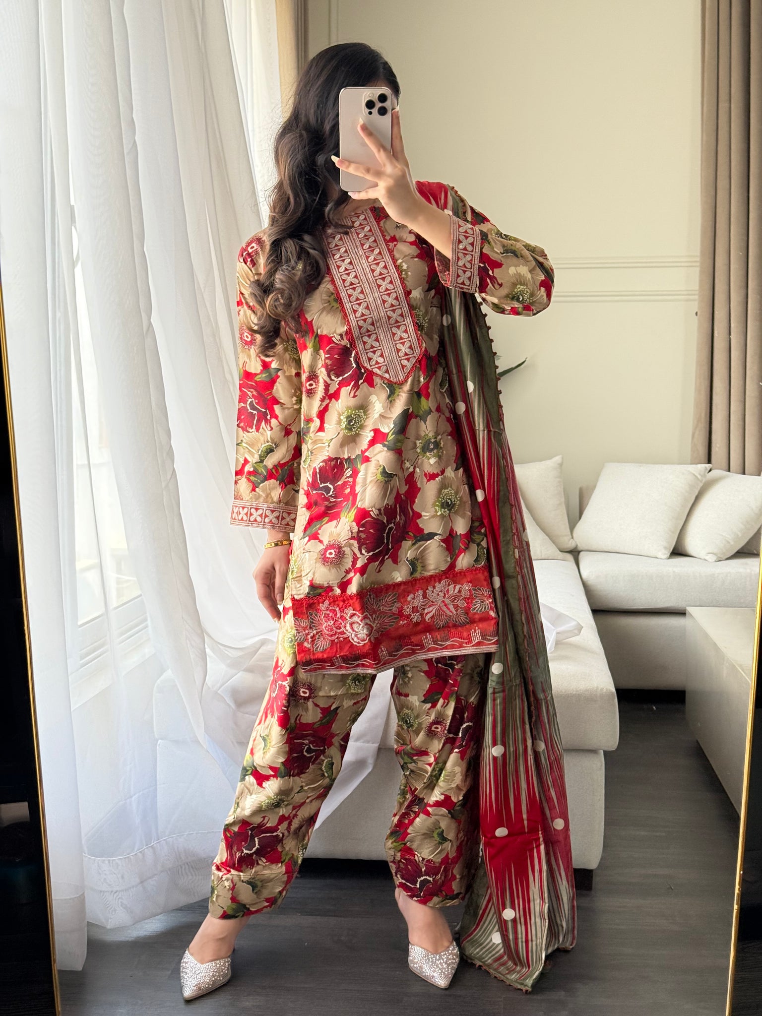 3PC Stitched shalwar Suit Ready to wear LINEN winter Wear with LINEN dupatta HW-DH32