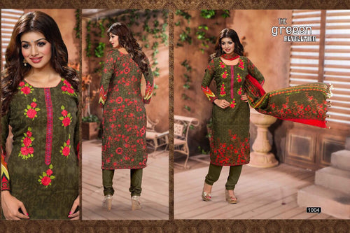 3 pcs Stitched Green Lilen suit with woollen Dupatta Ready to wear for winter IRLILEN-08